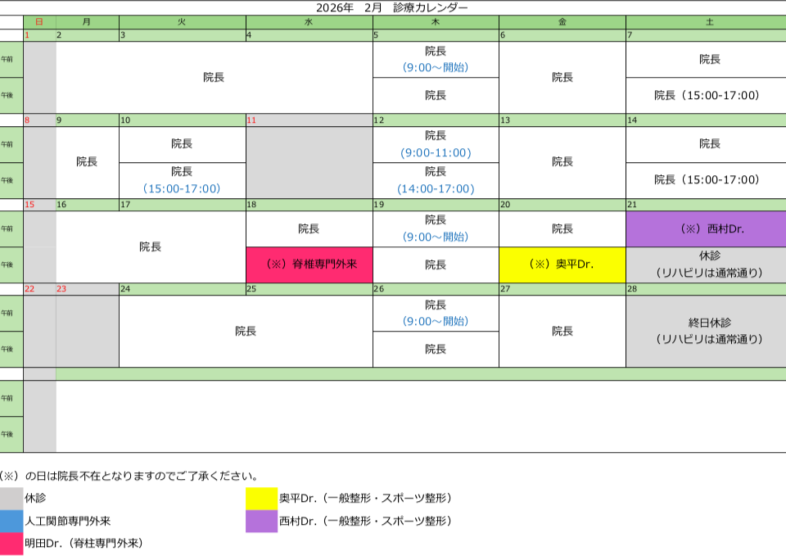 診療カレンダー